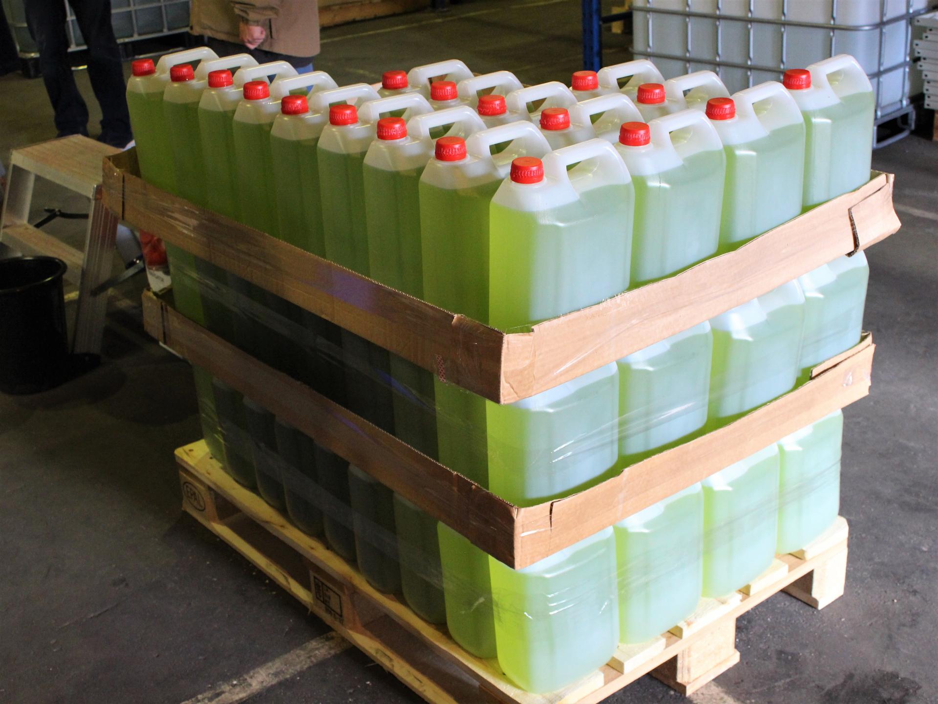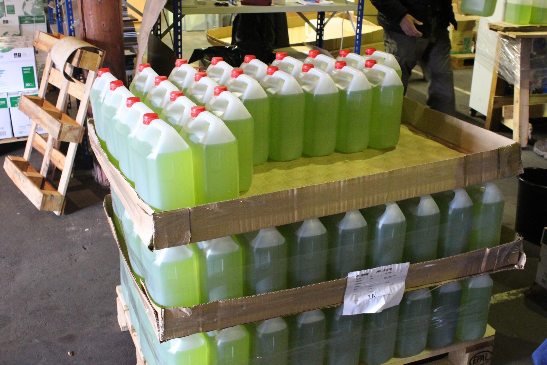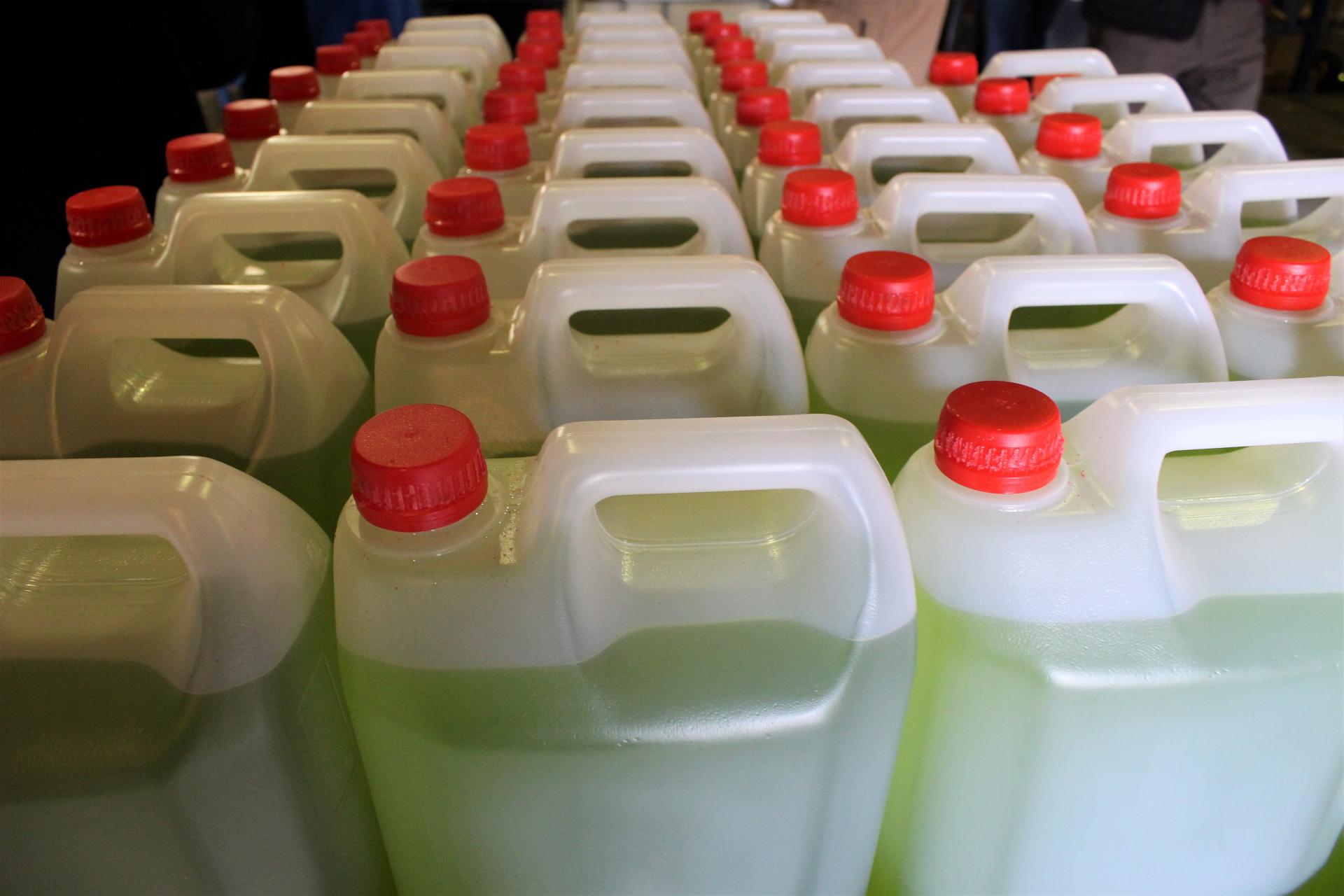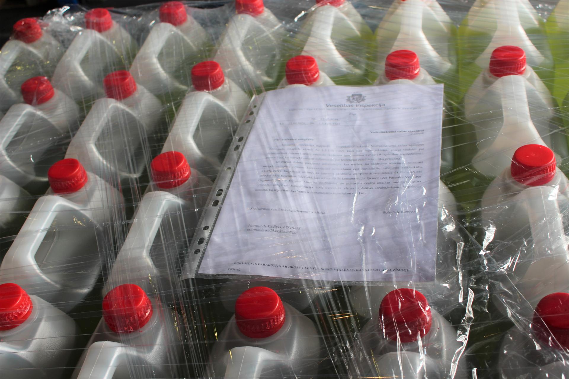 Divdesmit divas tonnas konfiscētā spirtu saturošā šķidruma tiks izmantotas telpu un virsmu dezinfekcijai