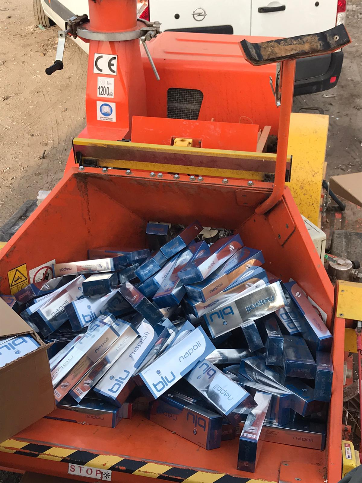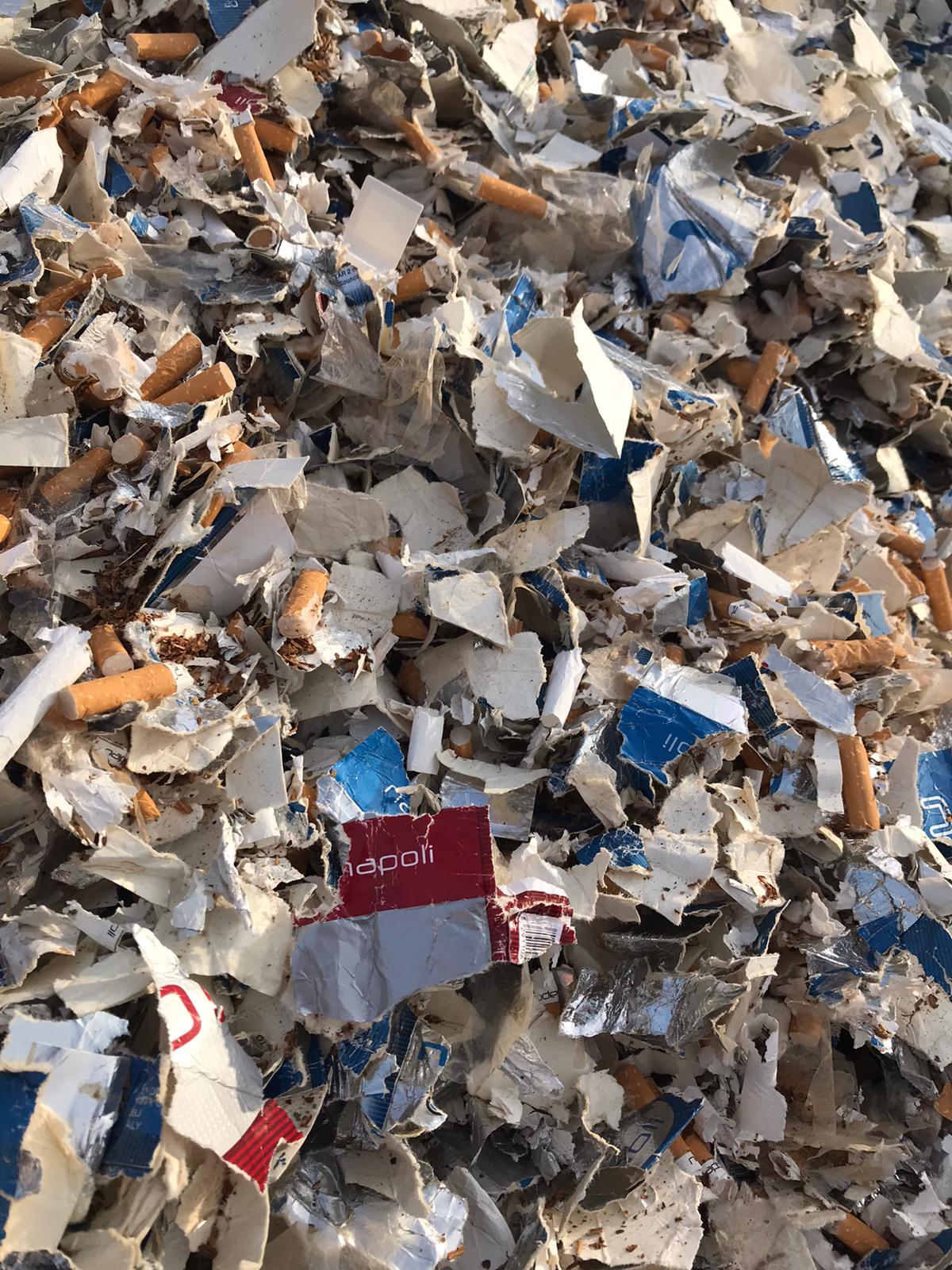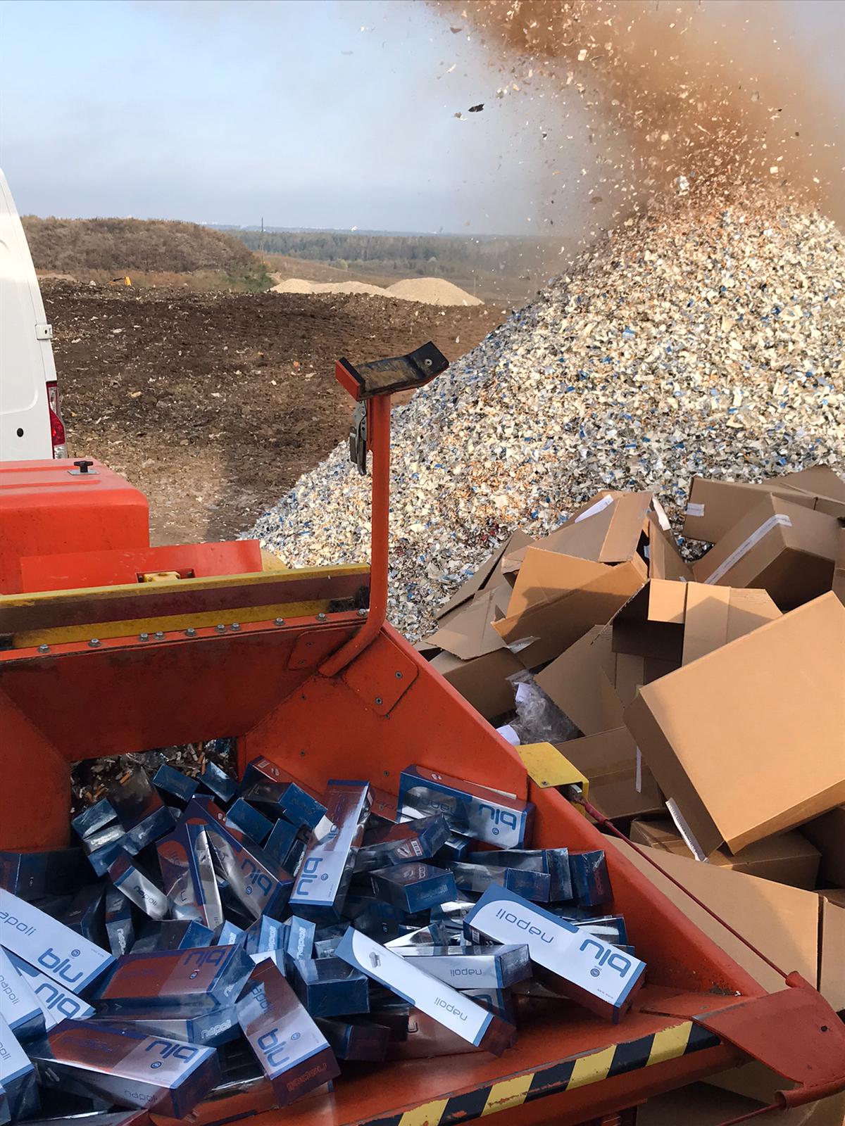 Kopumā tika iznīcinātas 36 paletes, uz kurām novietotas dažādu marku cigaretes.