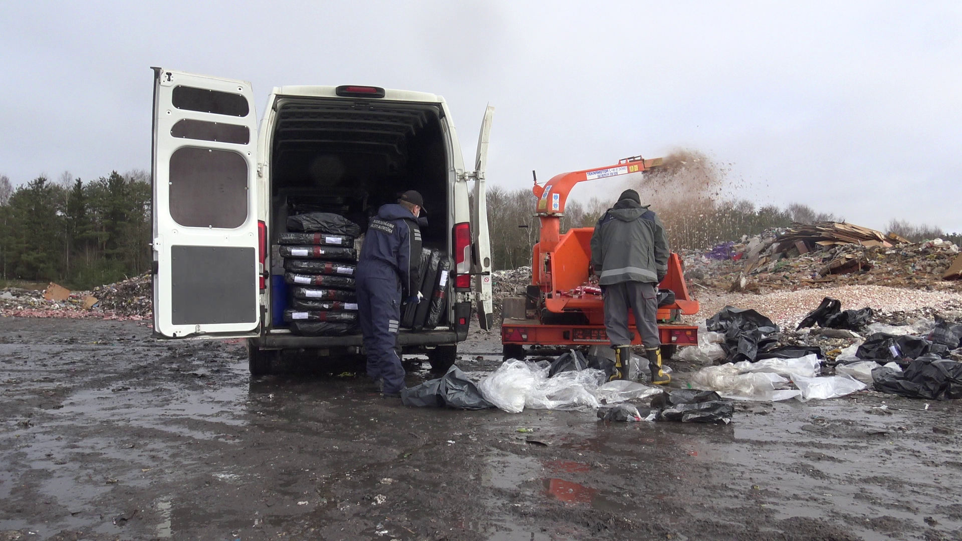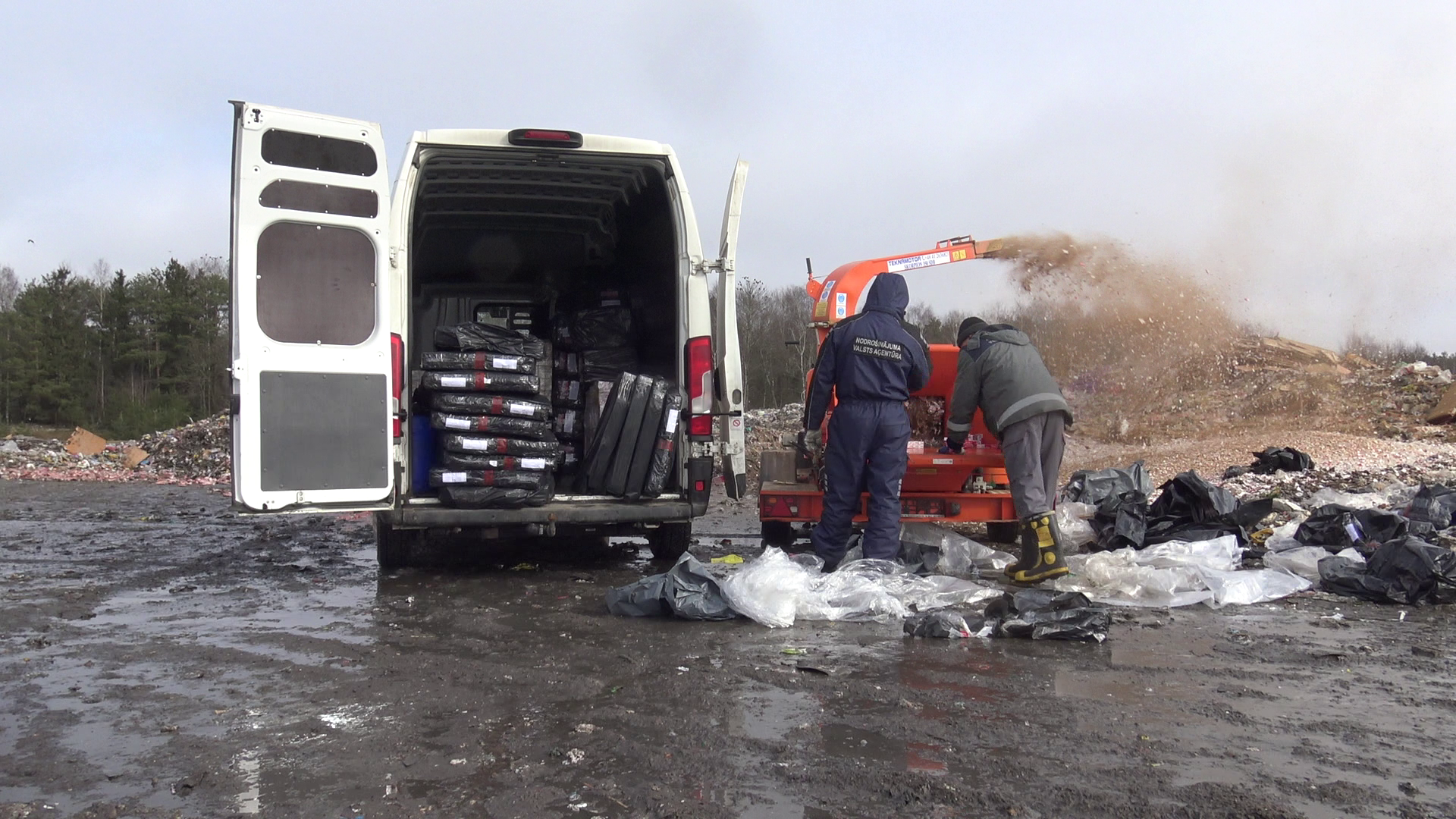 Nodrošinājuma valsts aģentūras Izņemto lietu, apsardzes un tehniskā atbalsta departamenta Tehniskā atbalsta un pārņemšanas nodaļas Ludzas sektors sadarbībā ar komersantu SIA „ALAAS” sadzīves atkritumu apglabāšanas poligonā „Križevņiki”, Ozolaines pagastā, Rēzeknes novadā, 1. un 16.martā kopumā iznīcināja 2741090 dažādu marku cigaretes 13 kriminālprocesos un 1 administratīvā pārkāpuma lietā.
