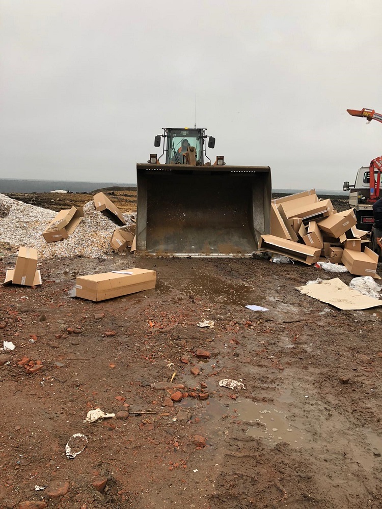 Kopumā tika iznīcinātas 30 paletes ar iepakojumiem, kuros atradās cigaretes.