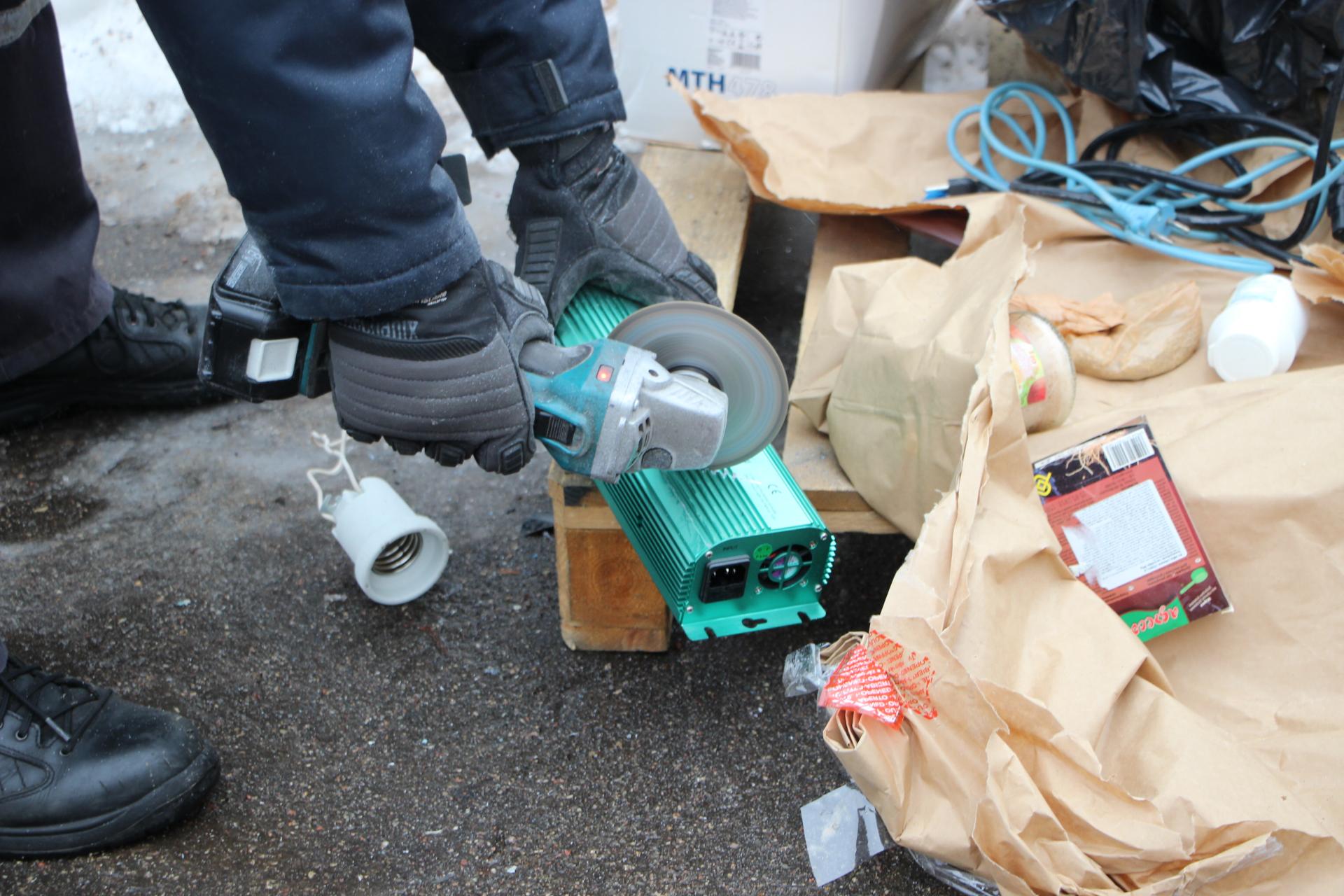 Valsts policijas Organizētās noziedzības apkarošanas pārvaldes darbinieki šos priekšmetus bija izņēmuši kādā dzīvoklī, kas bija pielāgots narkotisko augu audzēšanai un arī pārstrādāšanai nelielā platībā. Kriminālprocesa ietvaros tika izņemtas gan ķīmiskās vietas, lai sagatavotu jau gatavas narkotiskās vielas, gan audzēšanu veicinošas vielas, kā arī lampas, uzsildošas telpu temperatūru.