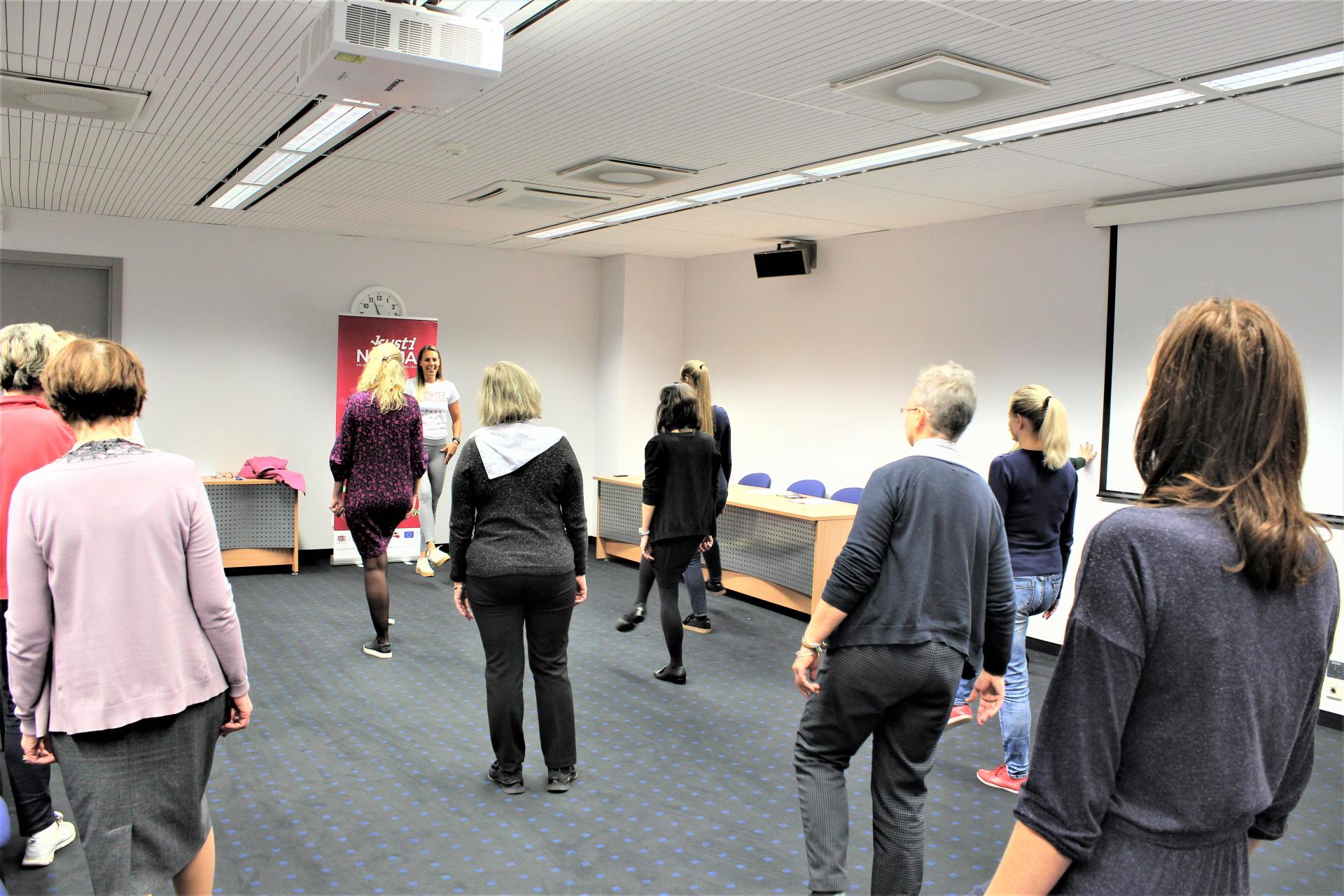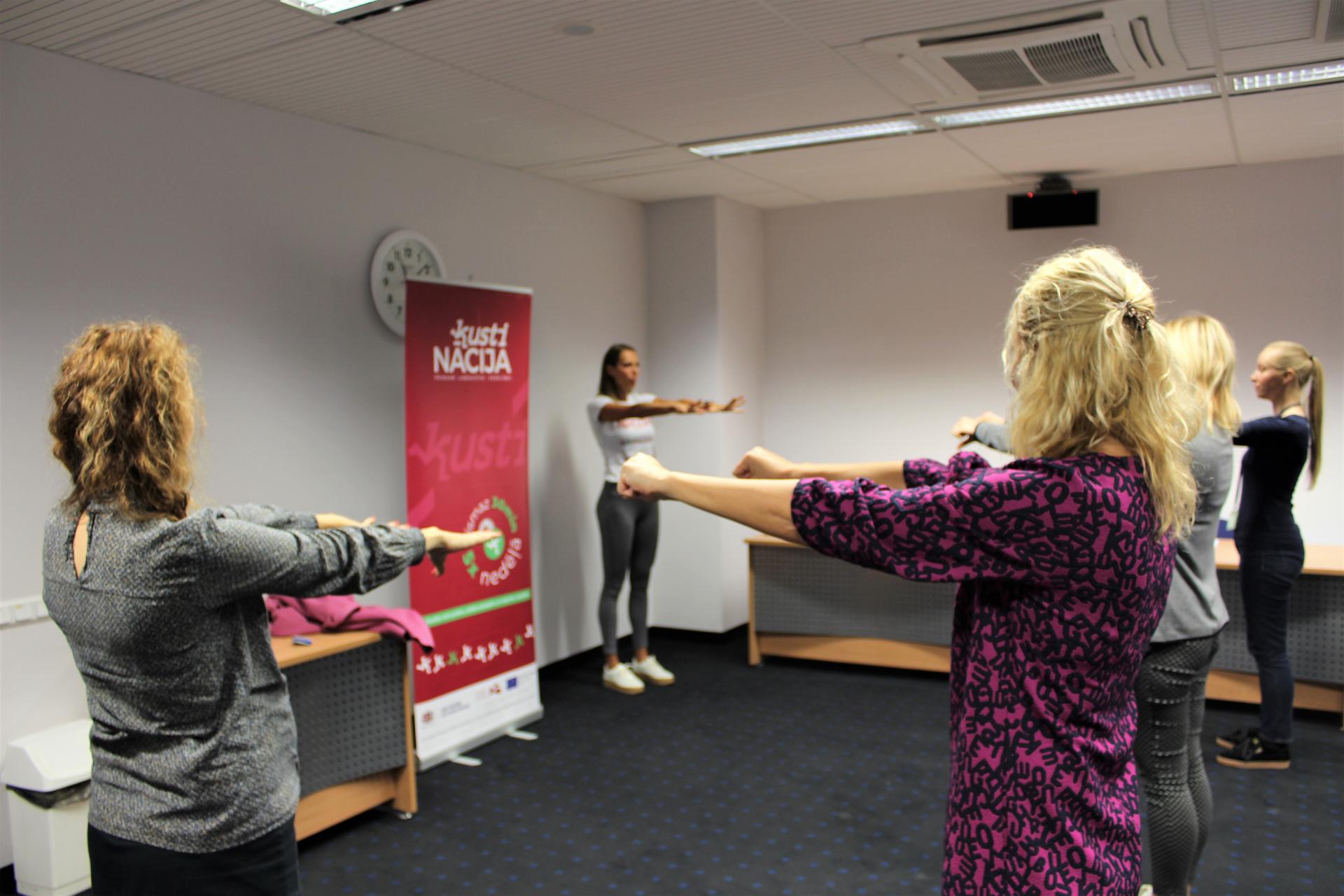 25. oktobrī Nodrošinājuma valsts aģentūras darbinieki piedalījās Veselības ministrijas rīkotās kampaņas „Kustinācija” nodarbībā, kuru vadīja fizioterapeite Sintija Priede.