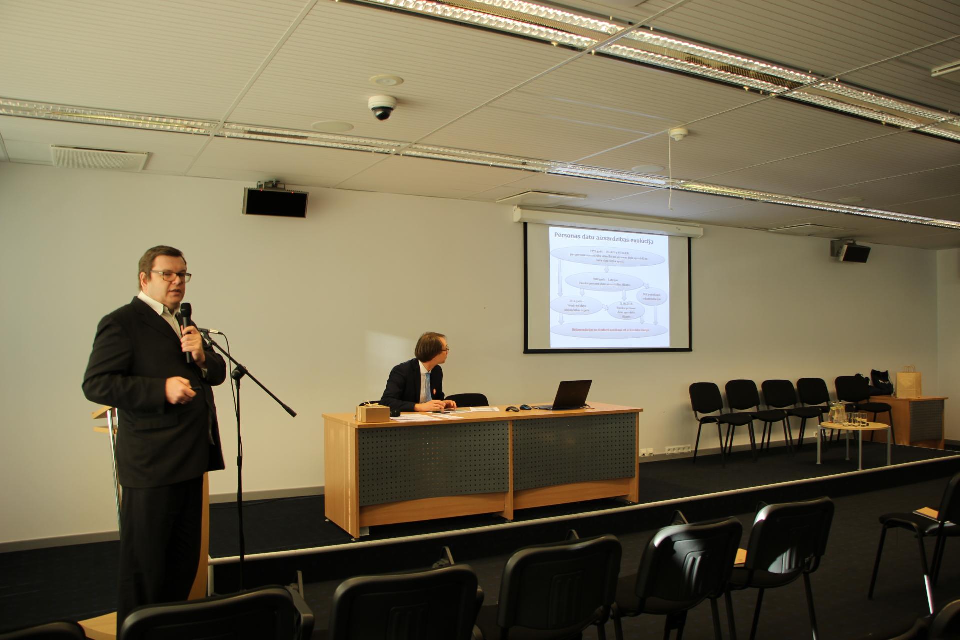 Vairāk kā stunda konferences galvenajā zālē tika veltīta arī personas datu aizsardzības jautājumiem. Vispirms Nodrošinājuma valsts aģentūras sistēmu analītiķis Armands Kreņģelis nolasīja savu lekciju “Kas mainās valsts iestādēm un to darbiniekiem?”, kas jau ir zināma aģentūras un Iekšlietu ministrijas darbiniekiem. Pēc tam sekoja diskusija, kurā piedalījās konferences moderators Reinis Zitmanis, IeM IC priekšnieks Pjotrs Dorogovs, IeM IC IKT drošības pārvaldnieks Sergejs Kanteruks, Arturs Filatovs no SIA Data Security Solutions un Armands Kreņģelis. Diemžēl diskusijā nepiedalījās Datu valsts inspekcijas pārstāvji, no kuriem joprojām tiek gaidīta lielāka iesaiste vienkāršu un skaidru rekomendāciju izstrādē personas datu aizsardzībai dažādās dzīves jomās.