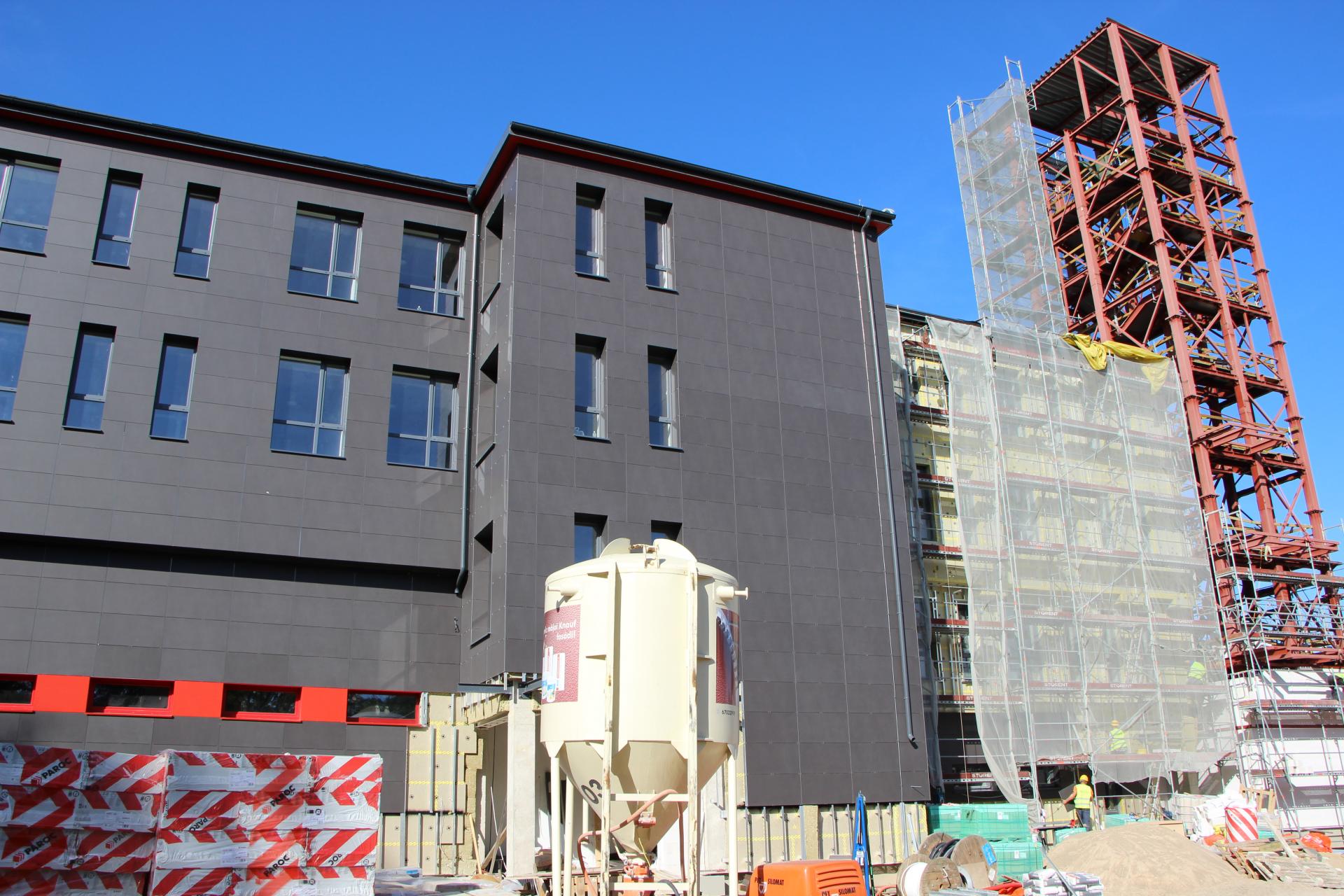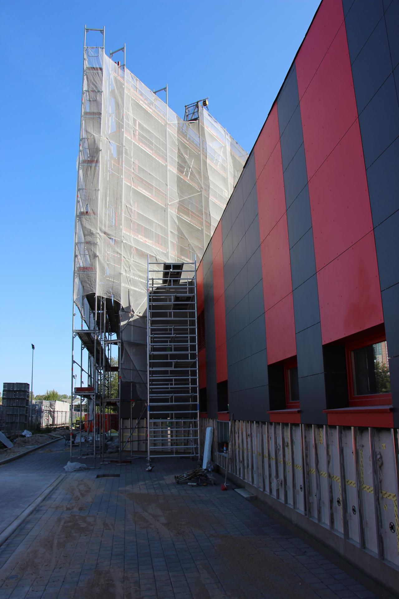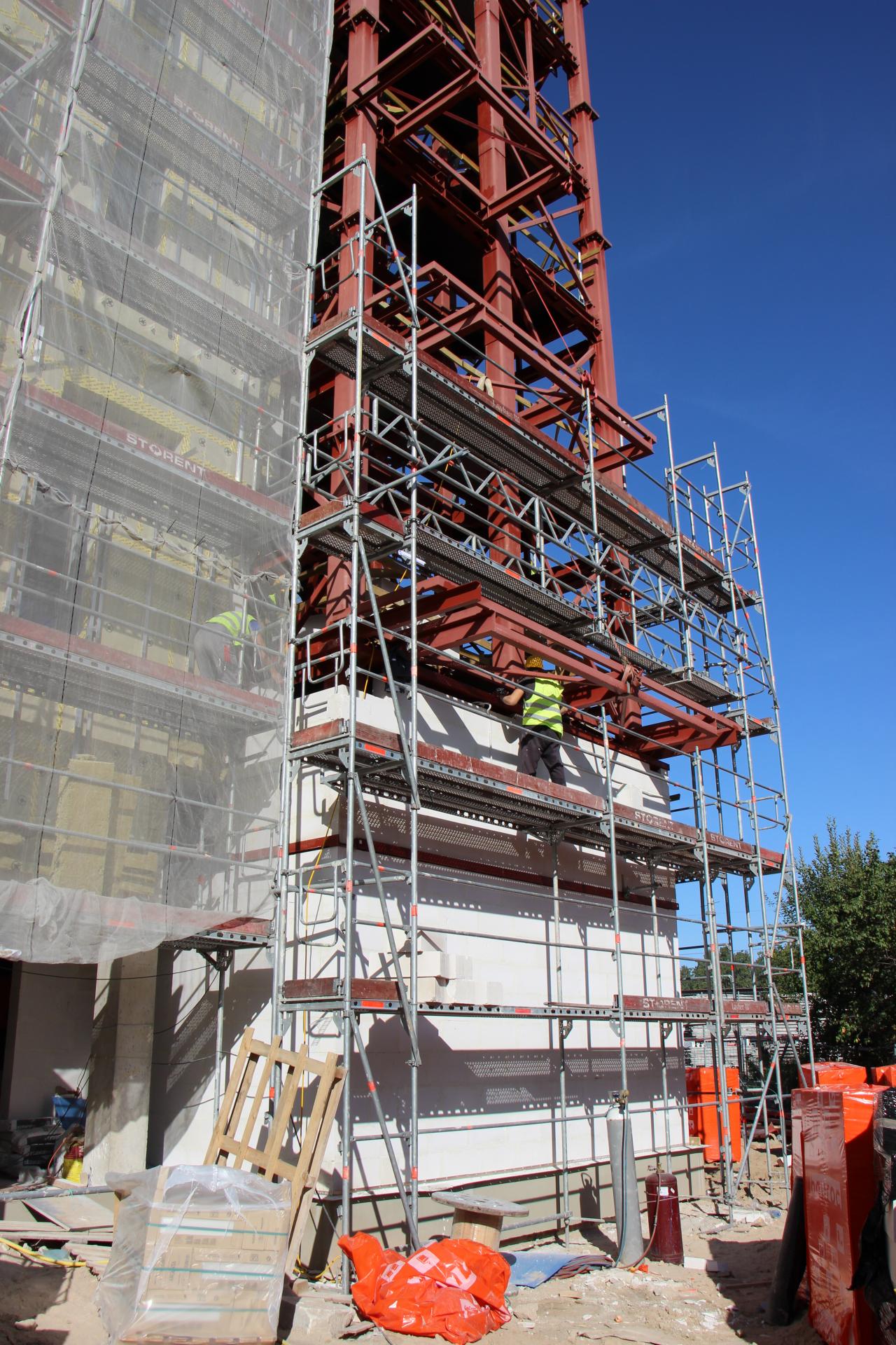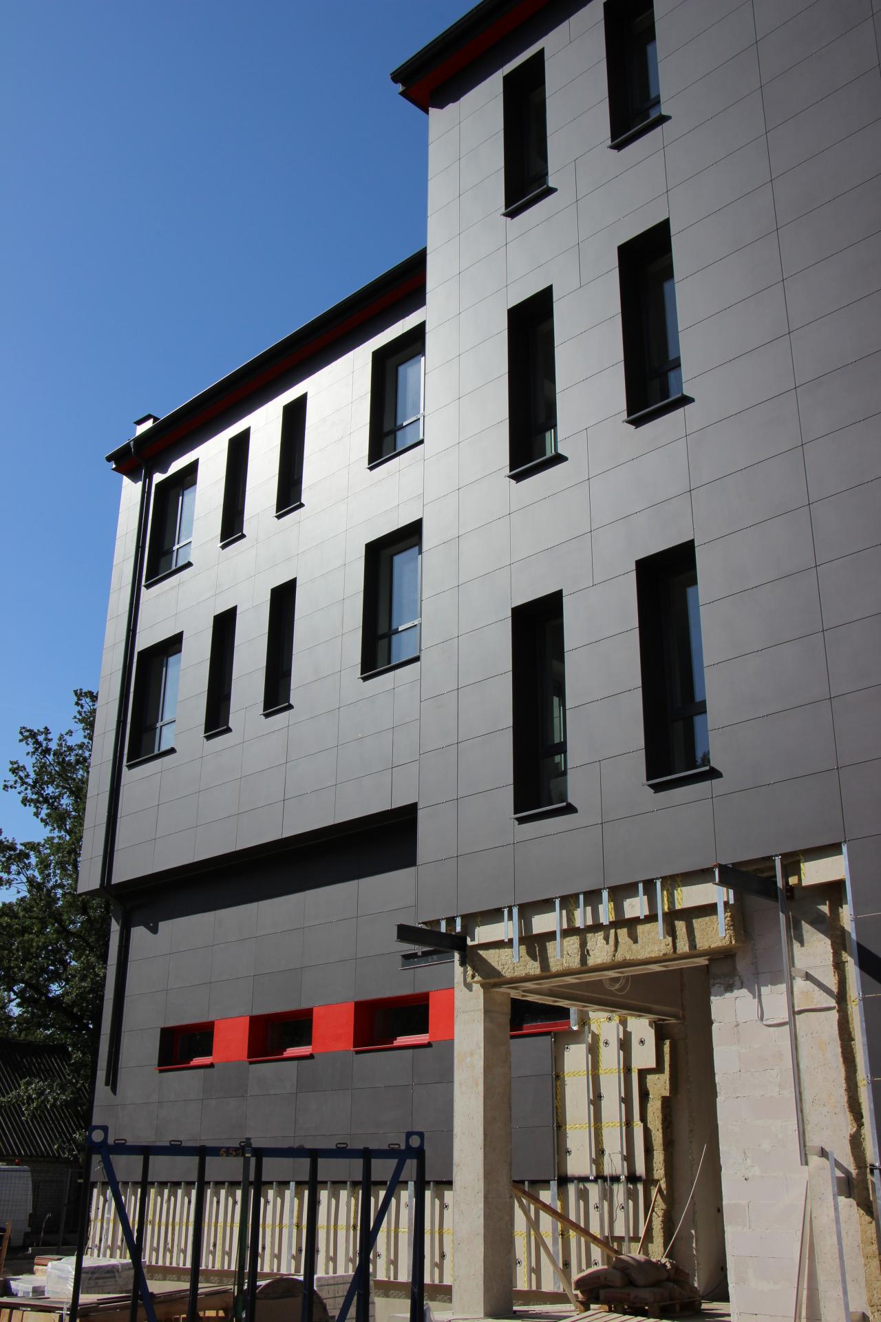Šobrīd jaunbūvē turpinās ēkas fasādes apdare un siltināšana, kā arī torņa ārsienas mūrēšana. Auto garāžām tiek līmēta jumta virskārta, notiek ūdens noteku un zibensaizsardzības sistēmas montāža.