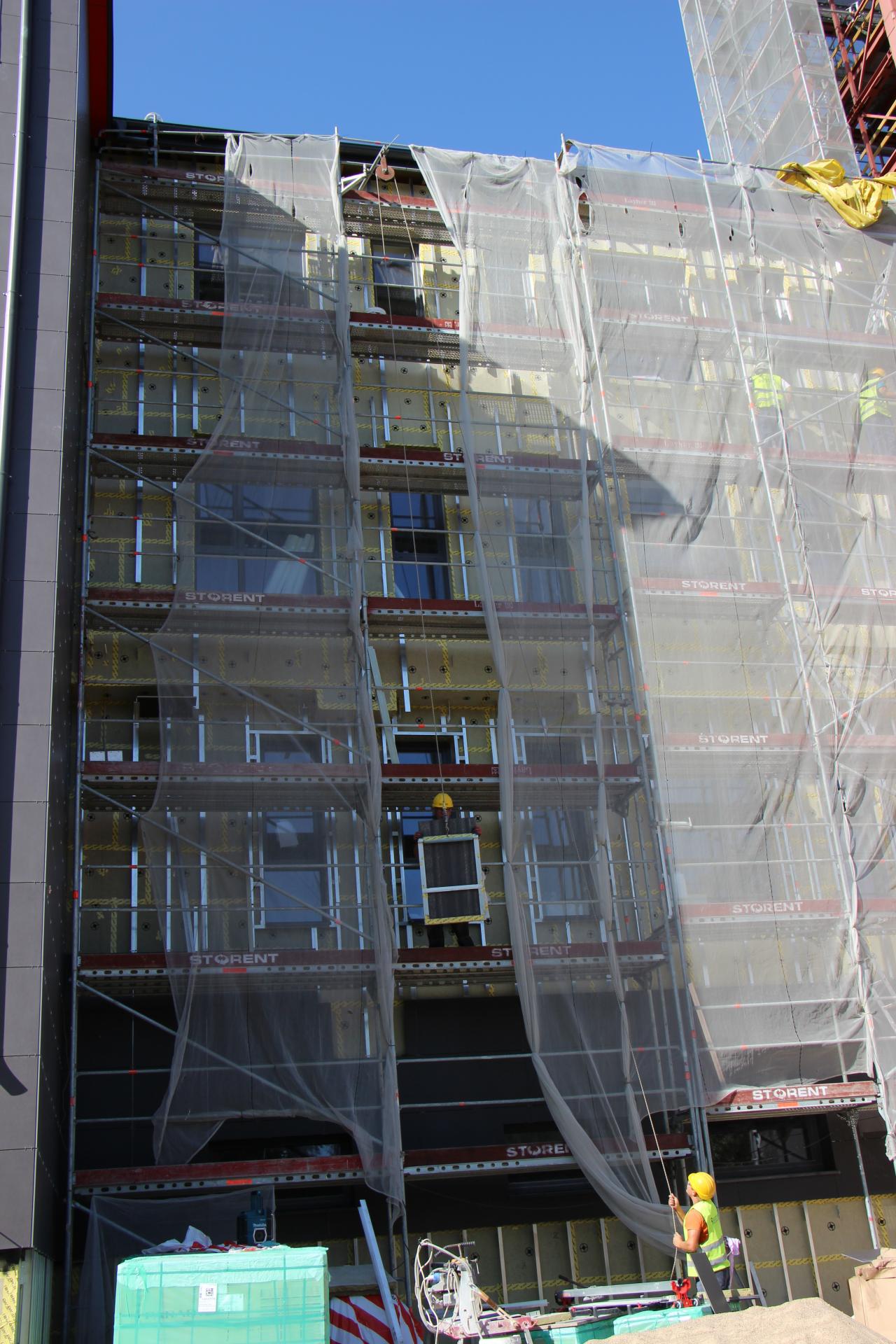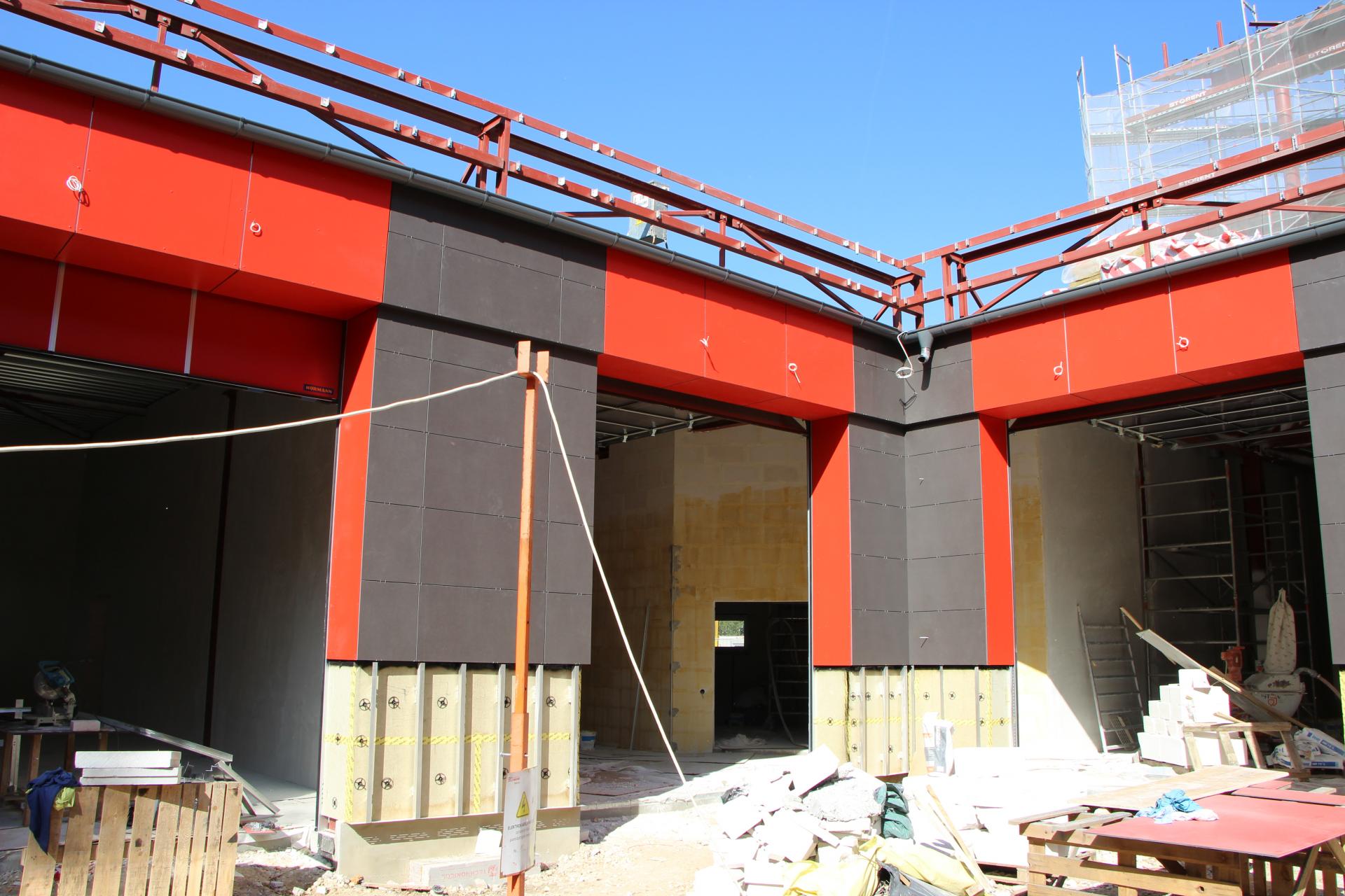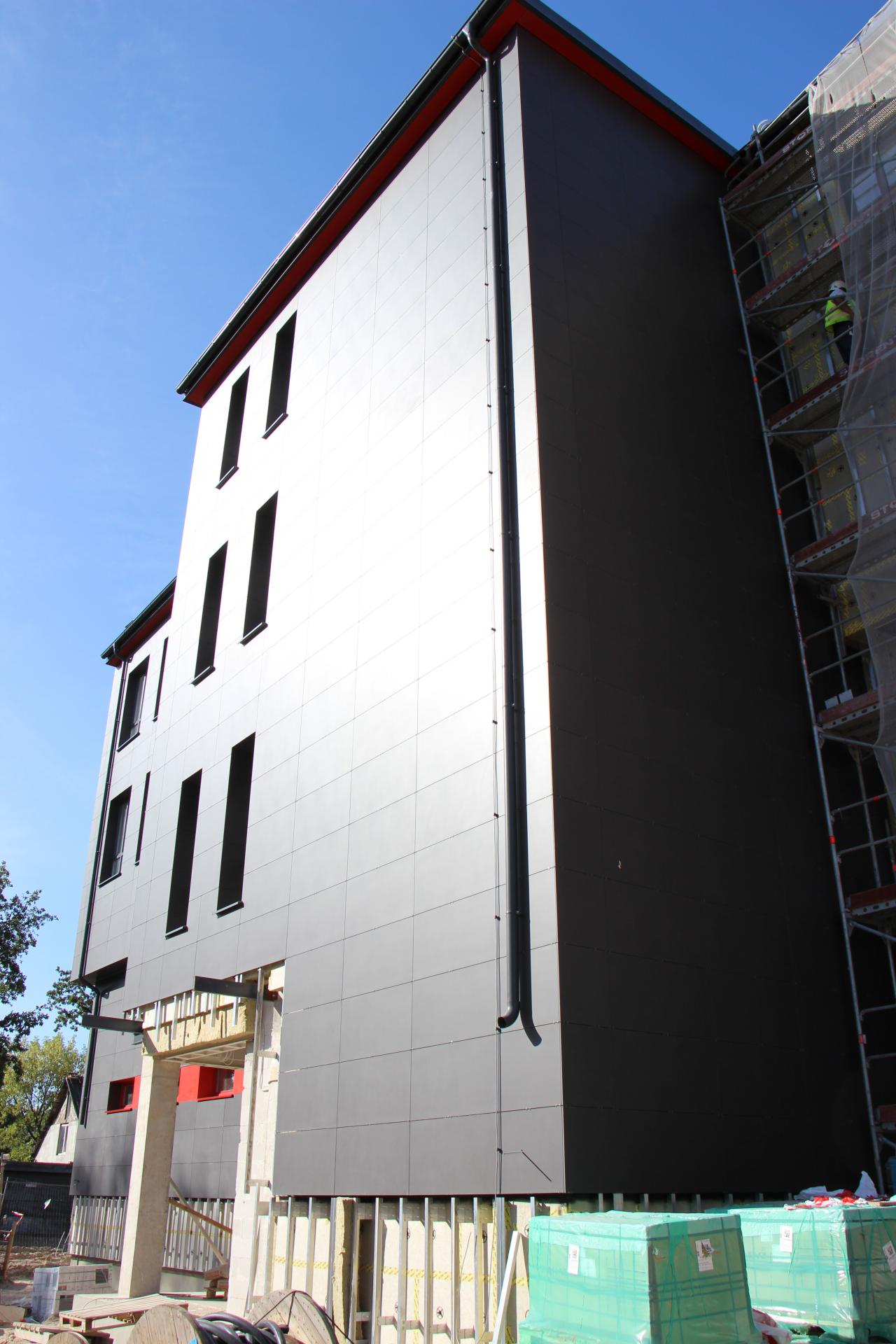 Šobrīd jaunbūvē turpinās ēkas fasādes apdare un siltināšana, kā arī torņa ārsienas mūrēšana. Auto garāžām tiek līmēta jumta virskārta, notiek ūdens noteku un zibensaizsardzības sistēmas montāža.