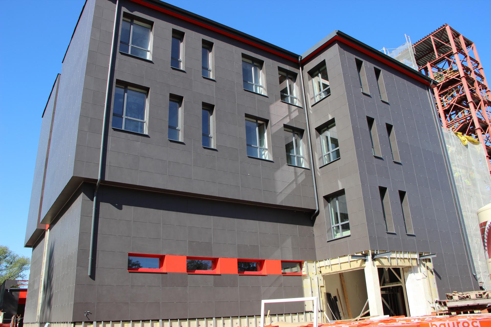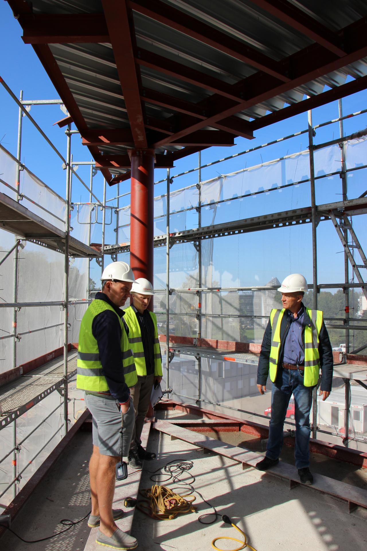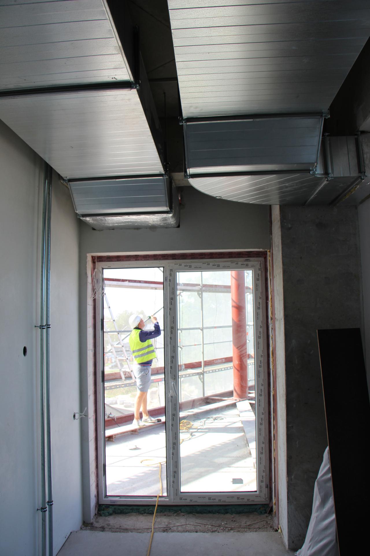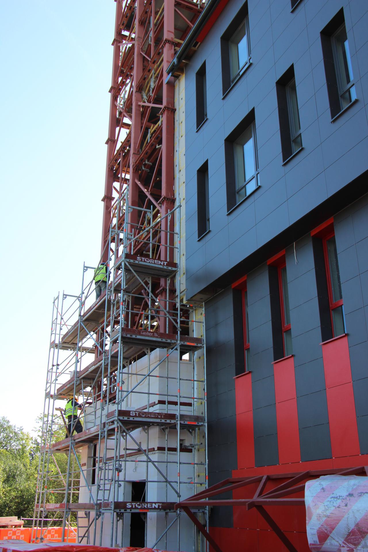 Šobrīd jaunbūvē turpinās ēkas fasādes apdare un siltināšana, kā arī torņa ārsienas mūrēšana. Auto garāžām tiek līmēta jumta virskārta, notiek ūdens noteku un zibensaizsardzības sistēmas montāža.