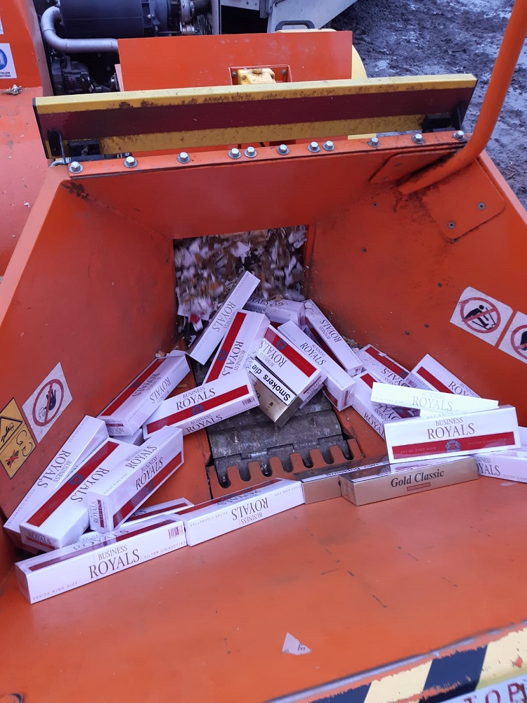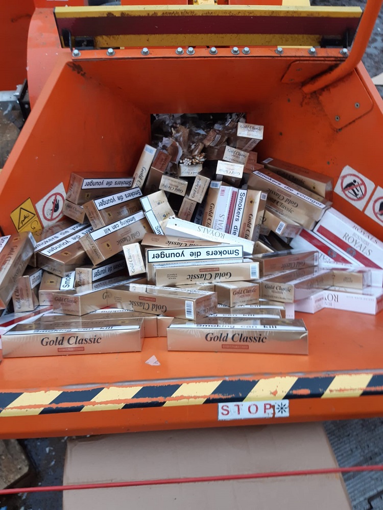 Kopumā tika iznīcināti 348 iepakojumi un 913 kastes ar cigaretēm (aptuveni 13 milj. cigarešu).
