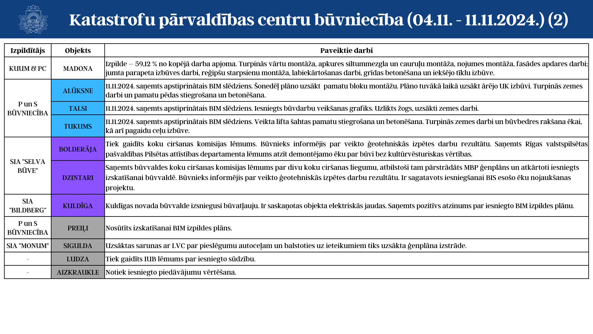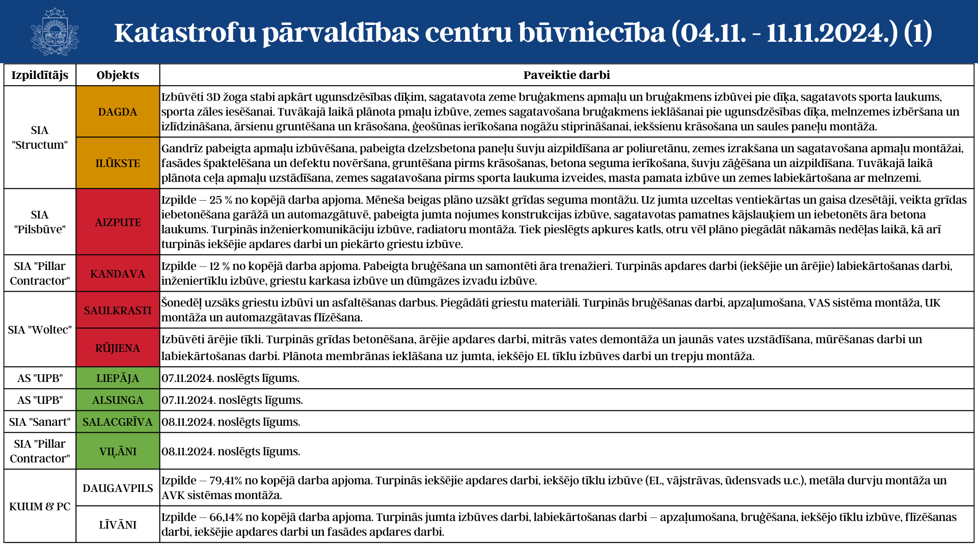 Aktuālā informācija par katastrofu pārvaldības centru būvniecību (04.11. - 11.11.2024.)