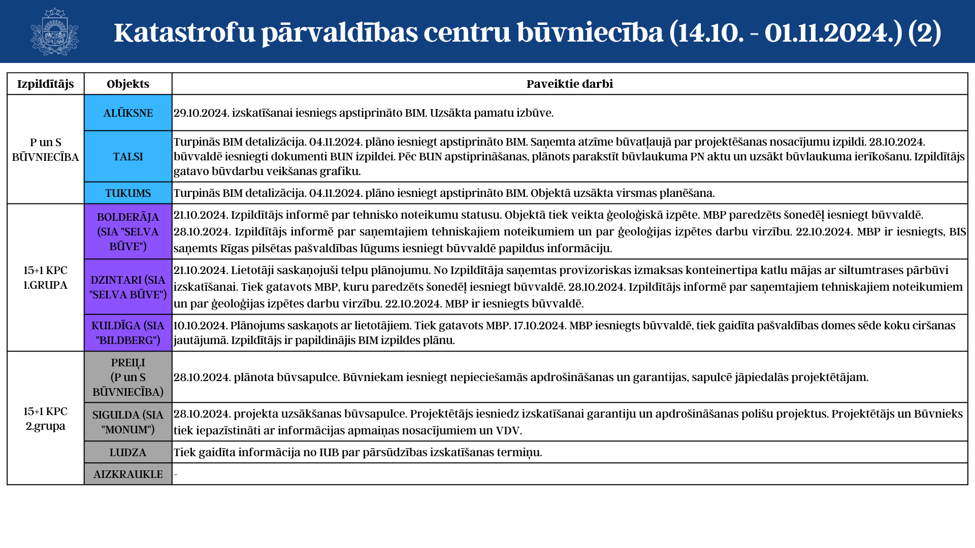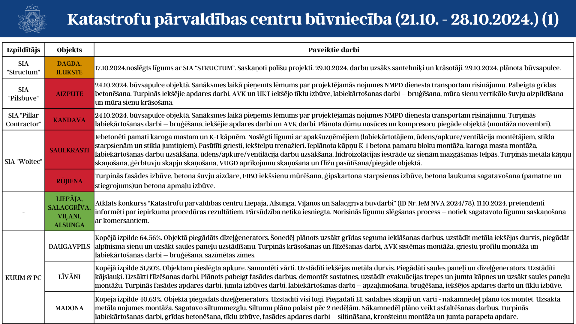 Aktuālā informācija par katastrofu pārvaldības centru būvniecību (21.10. - 28.10.2024.)