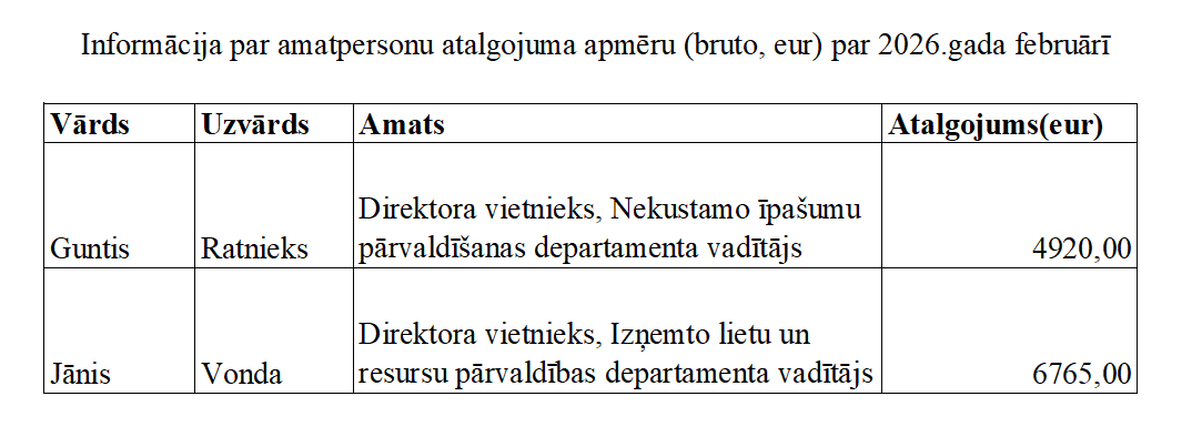 Informācija par amatpersonu atalgojuma apmēru 2026. gada februārī